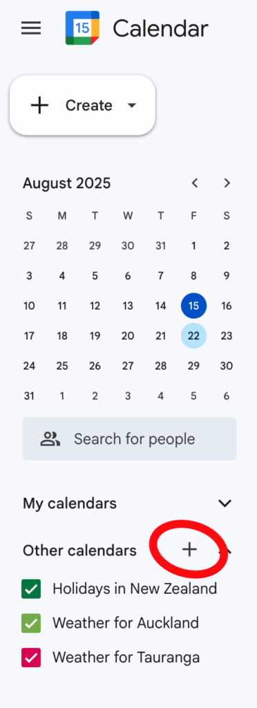 - Find the ‘other calendars’ section and click the + button