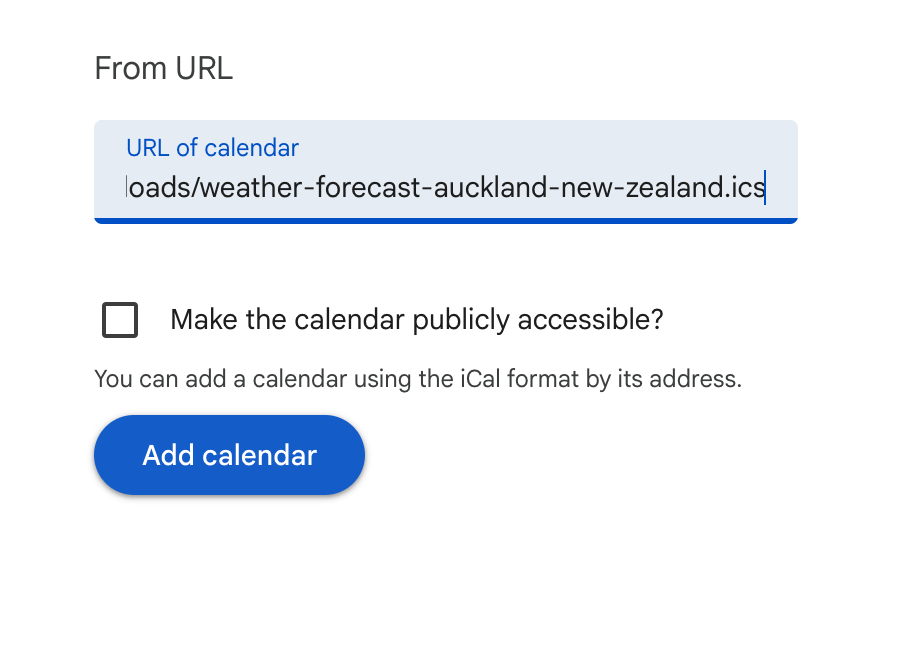 3. Enter the URL for the calendar then click “Add Calendar”